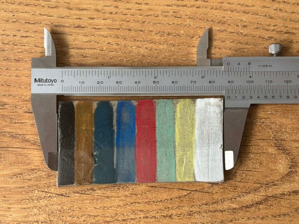 Jednak jak się okazuje, wyliczenie to nie wszystko… Zrobiłem kafelek testowy, który w momencie tworzenia z wilgotnej gliny miał rozmiar 100×50 mm. Po wypale natomiast okazało się, że jego wymiar to 88,5 mm, co daje nam skurcz o 11,5%, a nie o 14,7% jak wyszło nam z obliczeń.